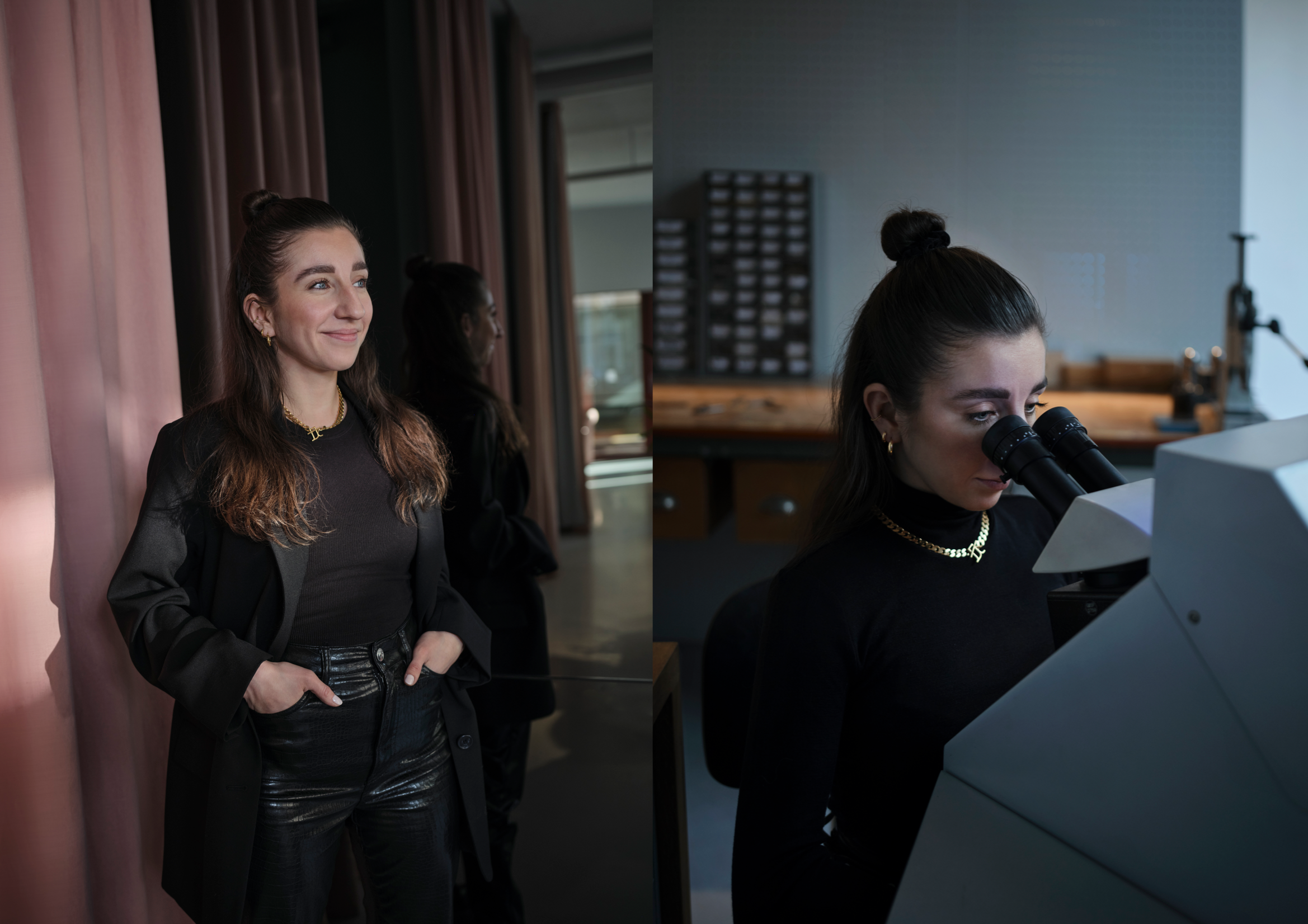 Tahira begann ihre Reise im Goldschmiedin mit einer dreijährigen Ausbildung an der Goldschmiedeschule Pforzheim. Nach ihrer Ausbildung verfeinerte sie ihre Fähigkeiten während der zweijährigen Weiterbildung an der Meisterschule. Ihr Können spiegelt sich in einem erfolgreichen Abschluss als Goldschmiedemeisterin wider, was ihre Hingabe und Fingerfertigkeit für das Handwerk unterstreicht. Mit drei Jahren Berufserfahrung in der Schmuckindustrie bringt Tahira ein tiefes Verständnis für die Feinheiten des Handwerks und ein Auge für Details mit. Seit über einem Jahr ist sie ein geschätztes Mitglied unseres Teams bei Jasmina Jovy Jewelry. In Zusammenarbeit mit Anna Holzinger leitet Tahira die Produktion in unserer Goldschmiedewerkstatt. Ihr Schwerpunkt liegt dabei auf der Umsetzung von Sonderanfertigungen sowie die Produktion und Weiterentwicklung unserer bestehenden Kollektionen. Tahira zeichnet sich nicht nur durch ihre handwerkliche Expertise aus, sondern auch durch ihre Kreativität und ihre Fähigkeit, individuelle Kundenwünsche in einzigartige Schmuckstücke zu verwandeln. Wir sind stolz darauf, Tahira als Teil unseres kreativen Teams zu haben und freuen uns darauf, gemeinsam weiterhin einzigartige Schmuckstücke zu schaffen, die die Persönlichkeit und Einzigartigkeit unserer Kunden widerspiegeln.